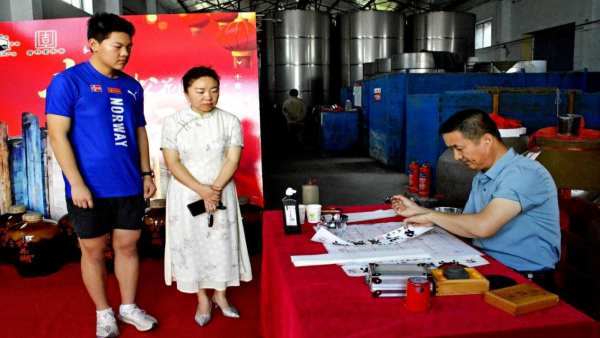 活動(dòng)現(xiàn)場(chǎng),書法家宣紙鋪展,飽蘸濃墨,筆鋒游走如龍,一氣呵成,將真誠(chéng)的祝福融入到靈動(dòng)的一筆一劃之中。消費(fèi)者近距離感受到了傳統(tǒng)文化的獨(dú)特魅力。題字蓋章后,工作人員和消費(fèi)者共同為美酒封壇。